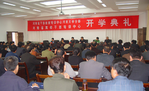 关爱和同志代表我校党委、行政发表了热情洋溢的讲话。他简要介绍了河南大学的历史沿革、人才培养及校园建设等方面的基本情况,表示学校将全力以赴,力争创一流培训中心,办示范精品班,并祝首期市厅班、第二期省直处长班、第十五期高校中青班的培训取得圆满成功。王发曾同志宣布了市厅班、省直处长班、第十五期高校中青班临时党支部及班委会成员名单,并对建设研究教学型培训中心等提出明确要求。