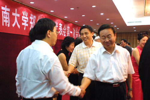省人大原副主任、新任会长马宪章首先带来省委副书记王全书对母校领导、老师和校友的问候。接着,马宪章同志说,河南大学是历史名校,我们作为河大学子感到无尚光荣。目前,在郑州工作的校友有1万余名,他们秉承母校“明德新民,止于至善”的校训,继承母校的光荣传统,在不同战线和岗位上勤奋工作,为河南省和郑州市的改革与发展做出了卓越的贡献。表示新一届校友会将按照有关章程规定,履行职责,同各位副会长、秘书长一起尽力做好工作,为各位校友搞好服务,为学校的发展做出新的贡献。我们是校友,是同志,也是兄弟姐妹,让我们团结一致,满腔热情、义不容辞、自觉主动地为母校贡献自己的一份力量。
