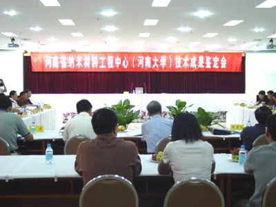 2004年8月29日,河南省科技厅在济源市主持召开了由我校河南省特种功能材料重点实验室及河南省纳米材料工程技术研究中心承担完成的“可分散性纳米二氧化硅系列产品”、“聚合物无机复合低表面能透明涂层的研制”、“油溶性铜纳米微粒的研制”、“油溶性低熔点合金纳米微粒的研制”等四个项目的技术成果鉴定会。