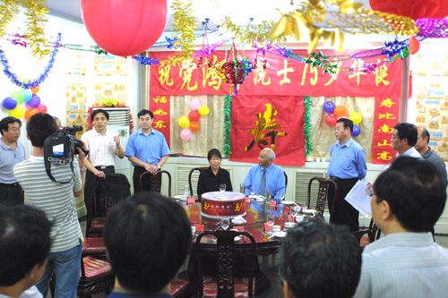 在王发曾同志的领唱下,参加党院士生日聚会的全体来宾和师生分别用中英文同声吟唱《祝你生日快乐》使现场的气氛达到了高潮。