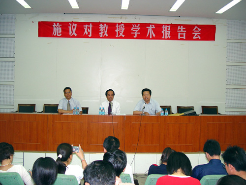 2004年5月22日上午9时,澳门大学文学院著名教授、我国词学研究专家施议对先生在科技馆一楼报告厅作了一场题为“中国词学史上的三座里程碑”的报告。我校副校长卢克平教授出席报告会,报告会由我校中国古典文学研究所所长孙克强主持。