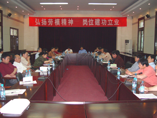 2004年5月20日下午,小礼堂内掌声阵阵,由校工会组织的“弘扬劳模精神,岗位建功立业”座谈会在这里热烈进行。省劳动模范代表孟彩云,马列德育部、东京医院负责同志,全校各部门工会主席参加了座谈。党委副书记郑邦山同志、工会主席袁顺友同志出席座谈会并讲话。座谈会由工会副主席孙青艾同志主持。