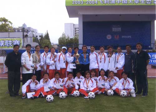 2003-2004年全国大学生飞利浦女子足球联赛东区决赛4月23-25日在上海同济大学落下帷幕。河南大学女子足球队首次代表河南参赛,经过顽强拼搏,夺得季军,同时跻身女足总决赛八强。