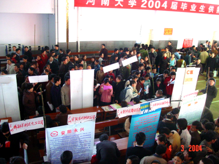 2004年3月4日上午,伴着和煦的春风,我校2004年毕业生供需洽谈会在老校区田径馆举行。8时开始,大批学生涌向会场,30分钟后,来自各个学院的学生已经把田径馆围的水泄不通。