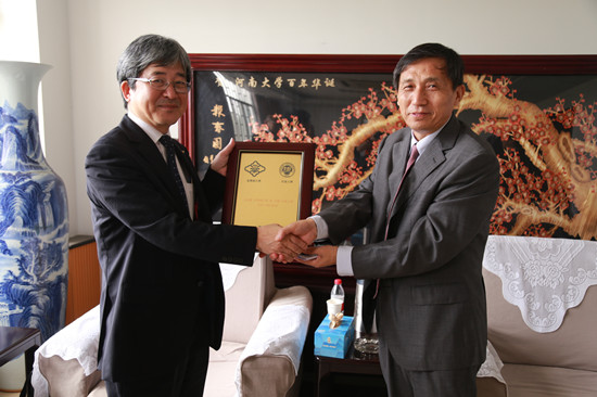关爱和对河野训副校长一行人的到来表示热烈的欢迎,他愉快地回忆起两次到皇学馆大学进行访问的往事。他说,河南大学与皇学馆大学自2004年建立合作交流关系,皇学馆大学自2008年与我校开展本科生“2+2”项目合作,接受我校成绩优秀的日语专业2年级学生以插班生的形式完成后两年的学习,今年刚好是我校向皇学馆大学选派留学生的第十年。关爱和表示,河南大学十分重视与皇学馆大学的交流与合作,认真组织并推进学生项目的进行,选派的学生均为日语专业学生里比较优秀的;同时,学校还先后派出10余名日语、历史专业的教师赴皇学馆大学进行为期1年或半年的访学,增进了友谊,促进了文化与学术的交流。