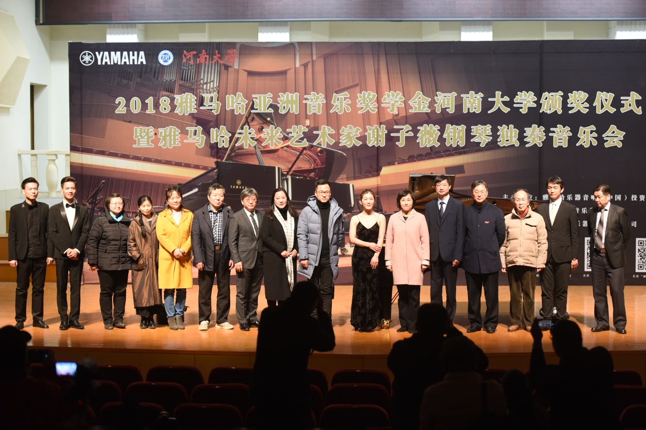12月19日晚,由雅马哈乐器音响(中国)投资有限公司和我校音乐学院主办,河南丽声乐器销售有限公司承办的2018雅马哈亚洲音乐奖学金颁奖仪式暨未来艺术家谢子薇钢琴独奏音乐会在音乐厅举行。校党委常委、工会主席沈洁霞,雅马哈钢琴营业部部长刘朋出席会议并致辞。来自业界学界的专家、学者及音乐学院获奖师生及学生代表参加活动。