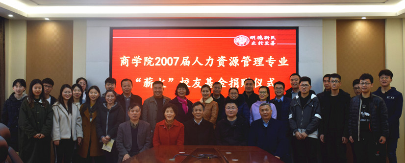 12月24日下午,商学院“薪火”校友基金捐赠仪式在院201学术研讨厅举行,校友工作与教育发展基金会办公室、商学院有关负责人,2007届人力资源管理专业校友李辉及商学院的师生代表出席本次仪式,仪式由副院长李志强主持。