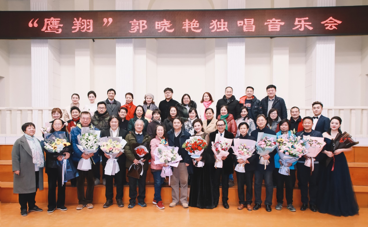 12月25日晚,音乐学院音乐厅座无虚席、歌声飞扬, “鹰翔”郭晓艳独唱音乐会华丽拉开帷幕。音乐学院声歌系教师郭晓艳为祖国改革开放四十周年献上了她的礼物。从古典时期到浪漫时期;从古代风情到现代潮流;从艺术歌曲到歌剧唱段;从世界名曲到中国民歌……音乐会作品涉及广泛,皆选自中外声乐名作。河南省文联副主席李仲党,郑州大学音乐学院院长巩伟、黄河科技学院音乐学院院长翟学京,原郑州师范学院音乐学院院长、著名声乐教育家夏宗贵,河南省妇女儿童中心书记任小林,河南爱乐之声乐器销售公司董事长席文太、著名文化学者、河南日报报业集团资深媒体人于茂世,以及音乐学院领导和师生观看音乐会。
