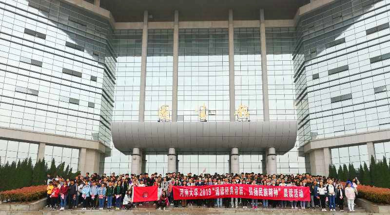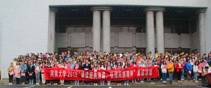 4月23日,是第24个世界读书日。由河南大学读书月组委会组织,宋韵诗书学社参与的青年学子晨读活动,在河南大学金明校区明德广场和明伦校区图书馆东门开展。本次活动的主题是“诵读经典诗篇,弘扬民族精神”。图书馆有关负责人及1000余名师生参加此次阅读活动。