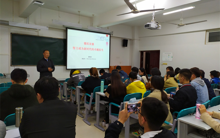 4月27日下午,临床医学院党委书记谢纳泽以“德医双修,努力成为新时代的卓越医生”为题,在曾宪梓楼210教室给临床医学院学生党员上了一堂精彩的思想教育课。