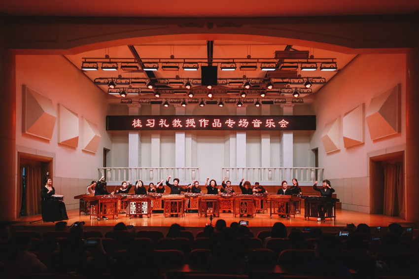 当日下午,桂习礼教授作品专场音乐会在音乐学院音乐厅举行。与会专家和我校扬琴专业师生共同为观众演奏了桂习礼教授创作的《流水欢歌》《昭君怨》《月夜清水江》《唱支山歌给党听》《阳关三叠》《土家挥手舞》《凤凰于飞》《映山红》《喜讯》等一首首经典的扬琴曲目。