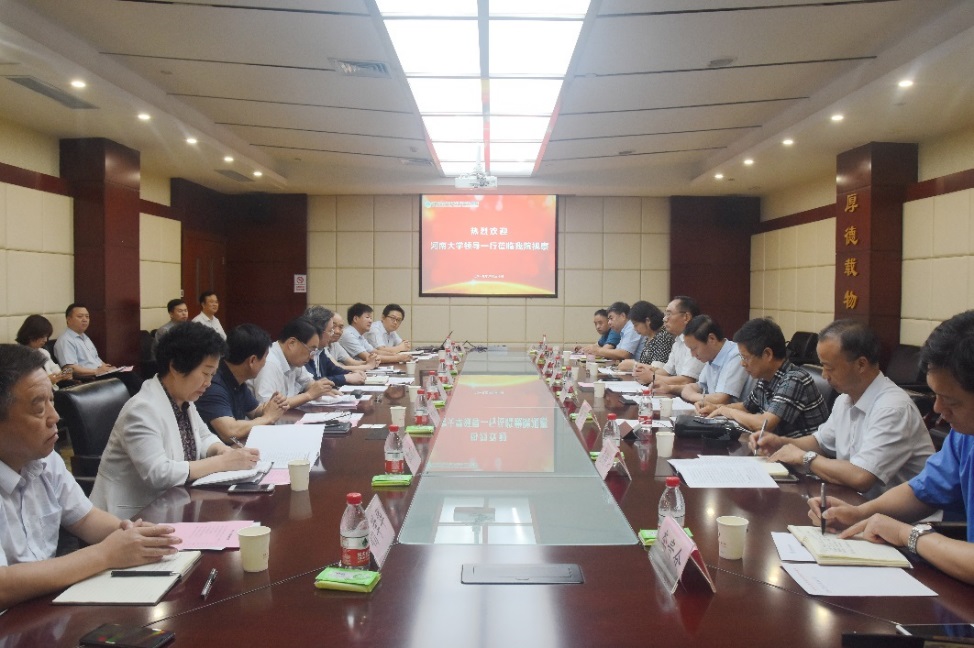 近日,校党委常委、副校长、医学院党工委书记孙君健带领医学院领导班子成员、相关办公室负责人到河南大学附属郑州颐和医院视察调研,并与医院党委书记、院长赵志刚及医院全体领导、相关科室负责人进行了座谈。原河南省卫生厅厅长刘全喜出席座谈会。会议由医院纪委书记、执行院长邢海平主持。