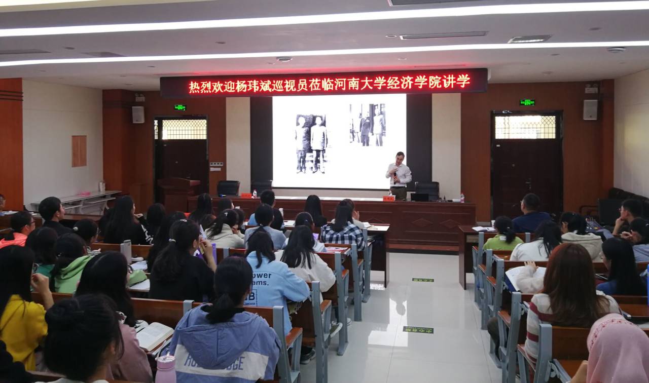 2019年10月31日下午,应学校邀请,我校校友、现任中共河南省委外事工作委员会办公室(河南省政府外事办)巡视员杨玮斌做客经济学院“经世大讲堂”,在学院二楼会议室为师生作专题报告。经济学院教师代表,近200名本科生、研究生到场聆听,报告会由经济学院副院长赵艳忠主持。