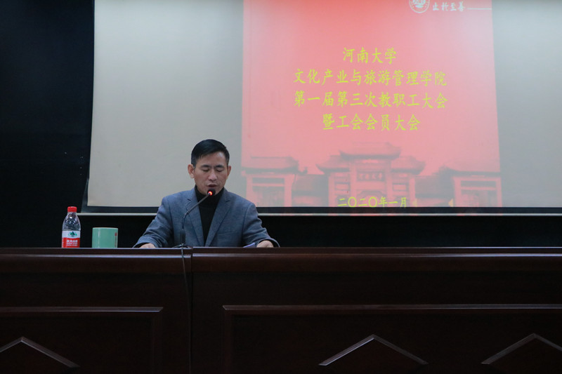 1月10日,文化产业与旅游管理学院第一届第三次教职工大会暨工会会员大会在学院三楼会议室召开。文化产业与旅游管理学院全体教职工出席会议。会议由副院长王东峰主持。