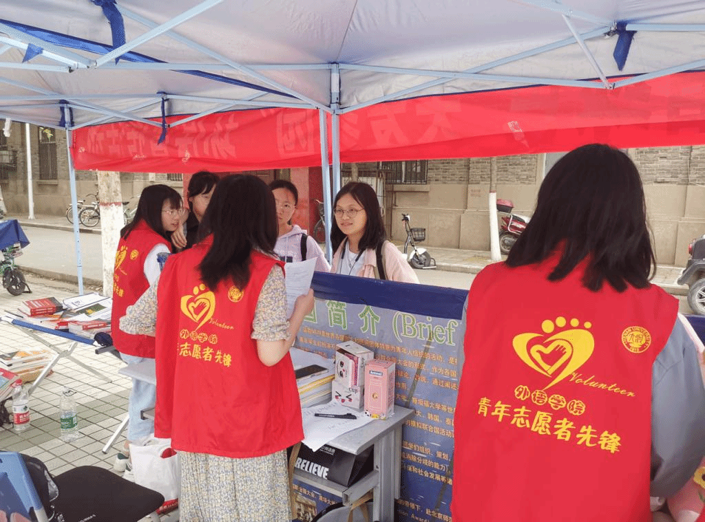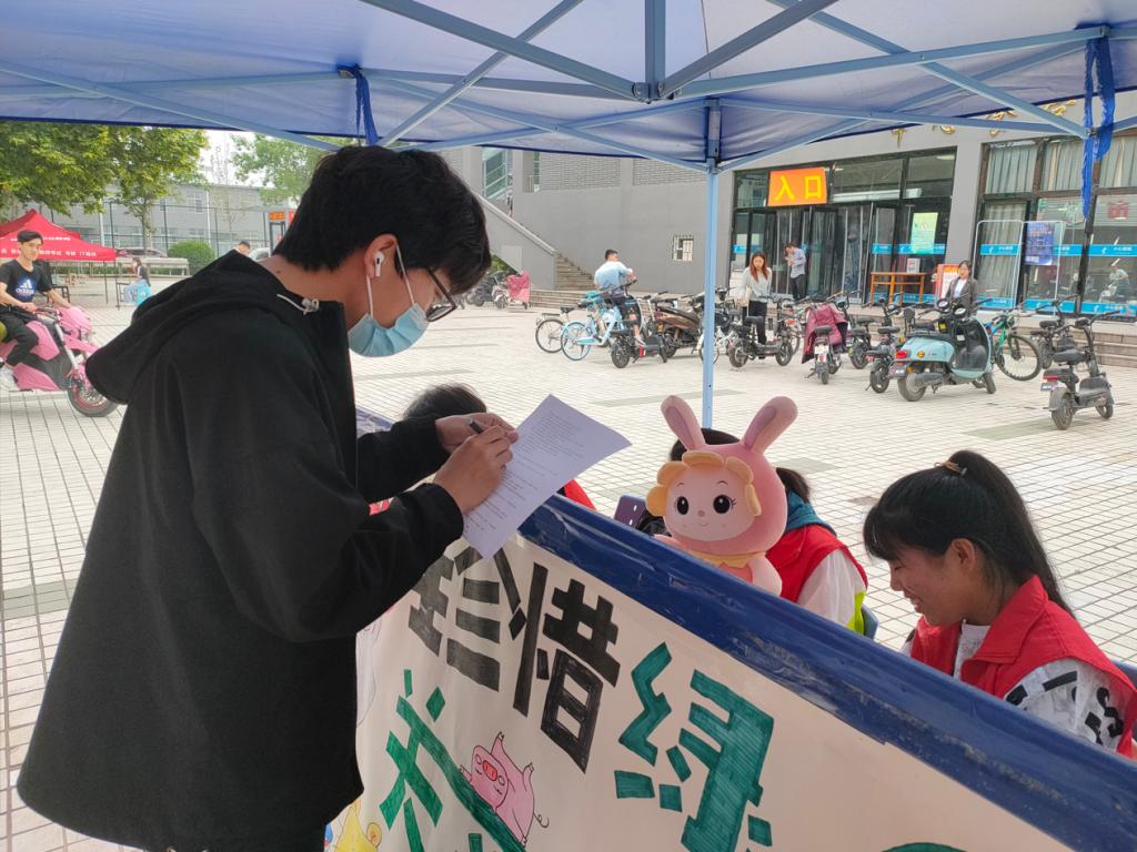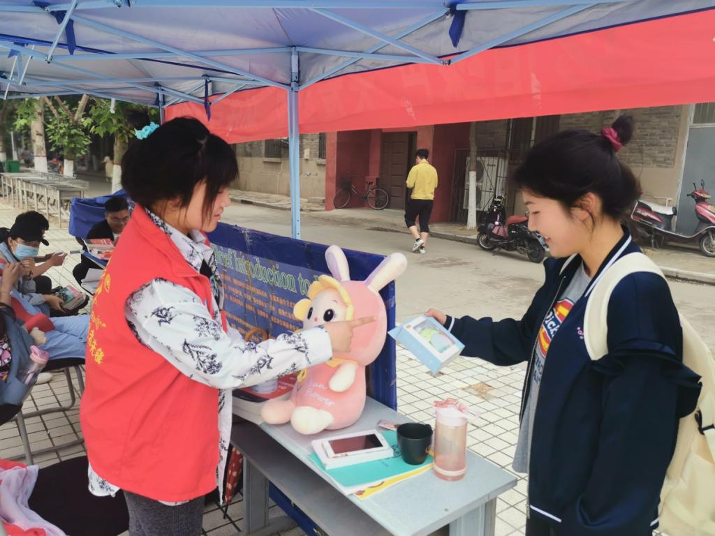 为积极宣传环境保护意识,落实科学发展观,积极践行环境保护行动,庆祝建党百年,外语学院青年志愿者协会于5月15日在明伦校区中心食堂门口开展了“珍惜绿色,关爱家园”环保宣传活动。
