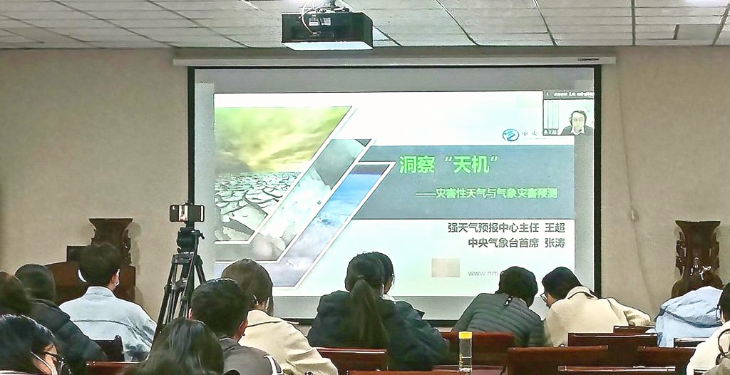赵越简要说明本次讲座的内容和目的,邀请人韩艳对两位专家的到来表示热烈欢迎。韩艳向与会人员介绍了两位专家及他们在我国气象灾害预警等方面的突出贡献,结合 “7.20”郑州特大暴雨事件等气象灾害事件和世界气象日的相关信息阐述了学习气象知识的重要性和必要性。