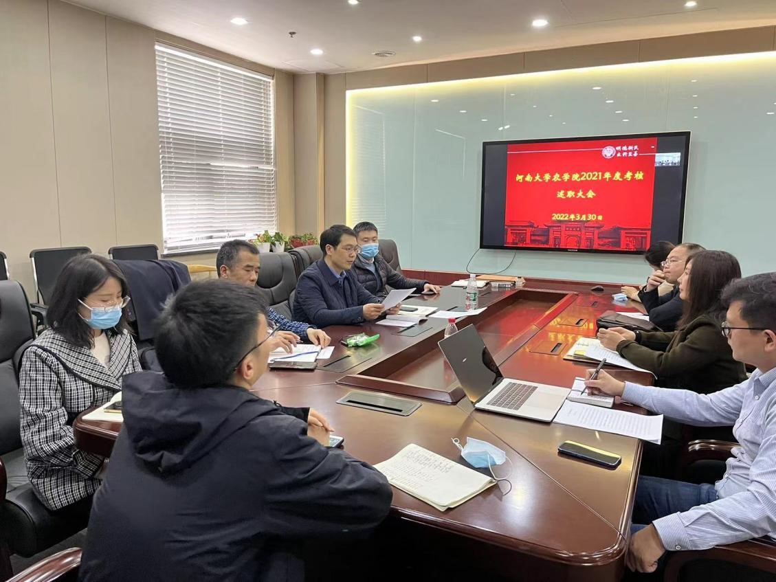 根据学校党委组织部安排,3月30日下午,农学院在省部共建作物逆境适应与改良国家重点实验室305会议室召开了2021年度领导班子和领导干部考核述职大会。会议采取线上、线下相结合的形式召开。学院班子和全体教职工参加会议,会议由学院党委书记王磊主持。