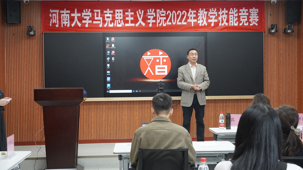 为响应2022河南省本科教学课堂教学质量提升年的号召,深入学习贯彻习近平总书记在学校思想政治理论课教师座谈会上的重要讲话精神,4月10日,马克思主义学院于学院511智慧教室举办2022年教学技能竞赛。四位校外专家评委、七位校内专家评委和四名学生评委应邀组成评委团,学院党委书记彭绪琴,执行院长、党委副书记任东景,副院长刘嘉尧现场观摩,本次竞赛由2019级本科生刘怡主持。