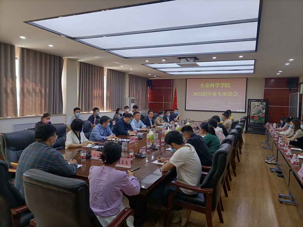 5月6日上午,生命科学学院在学院B201会议室召开2022届毕业生代表座谈会。生命科学学院全体领导班子成员,学院本科生和研究生毕业生以及棉花生物学国家重点实验室、省部共建作物逆境适应与改良国家重点实验室研究生毕业生代表近40人参加会议。座谈会由学院党委副书记程亚敏主持。