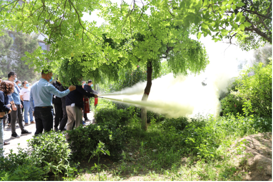 在会议的消防应急演练阶段,马建军为与会人员详细讲解了日常生活中的消防常识、灭火器的使用、火场逃生及人员疏散等有关消防知识。并现场演示了灭火器功能用途以及操作程序。组织全体人员开展了以灭火、逃生技能为主题的应急演练活动。在演练现场,大家学习氛围浓厚,踊跃参与灭火器的使用,整个培训期间提问络绎不绝,马建军都给予详细解答。培训过后,王处长一行到出版社重点安全单位书库进行安全工作指导,指出消防工作存在的问题和不足,提出改进建议。