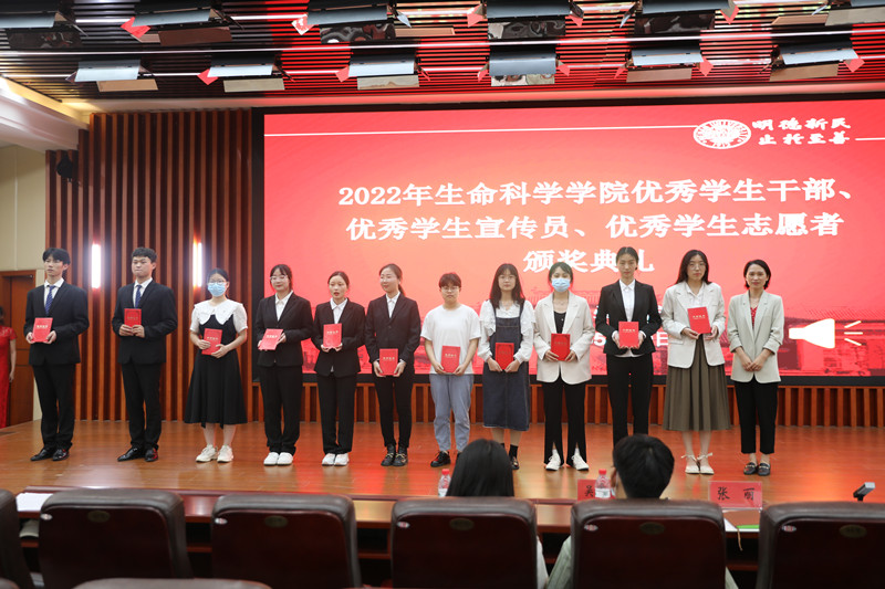 竞选结束后,生命科学学院对2021-2022学年生命科学学院团委优秀学生干部、优秀学生宣传员和优秀学生志愿者进行了表彰,张丽为获奖同学们颁发了荣誉证书。