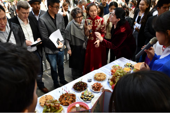 除丰富的歌舞节目外,丝路学院、吉中学院的同学们还精心准备了各类特色美食,师生欢聚一堂,共同品鉴。