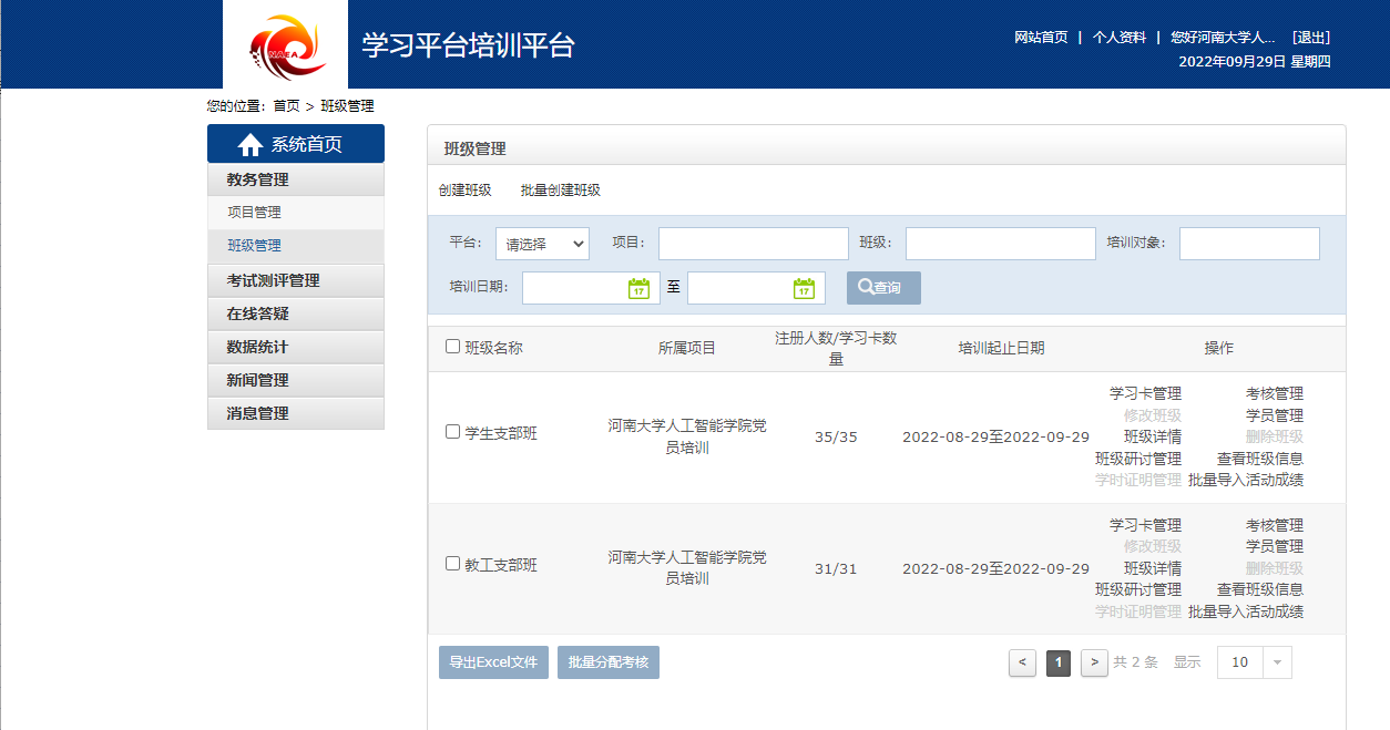 为深入学习贯彻习近平新时代中国特色社会主义思想,进一步提升全体党员党性修养和政治理论水平,以实际行动迎接党的二十大胜利召开。8月29日—9月29日,人工智能学院党委依托国家教育行政学院中国教育干部网络学院平台,举办了党性修养专题网络培训班。参加此次培训的党员包括教师党员,学生党员,共计66人。