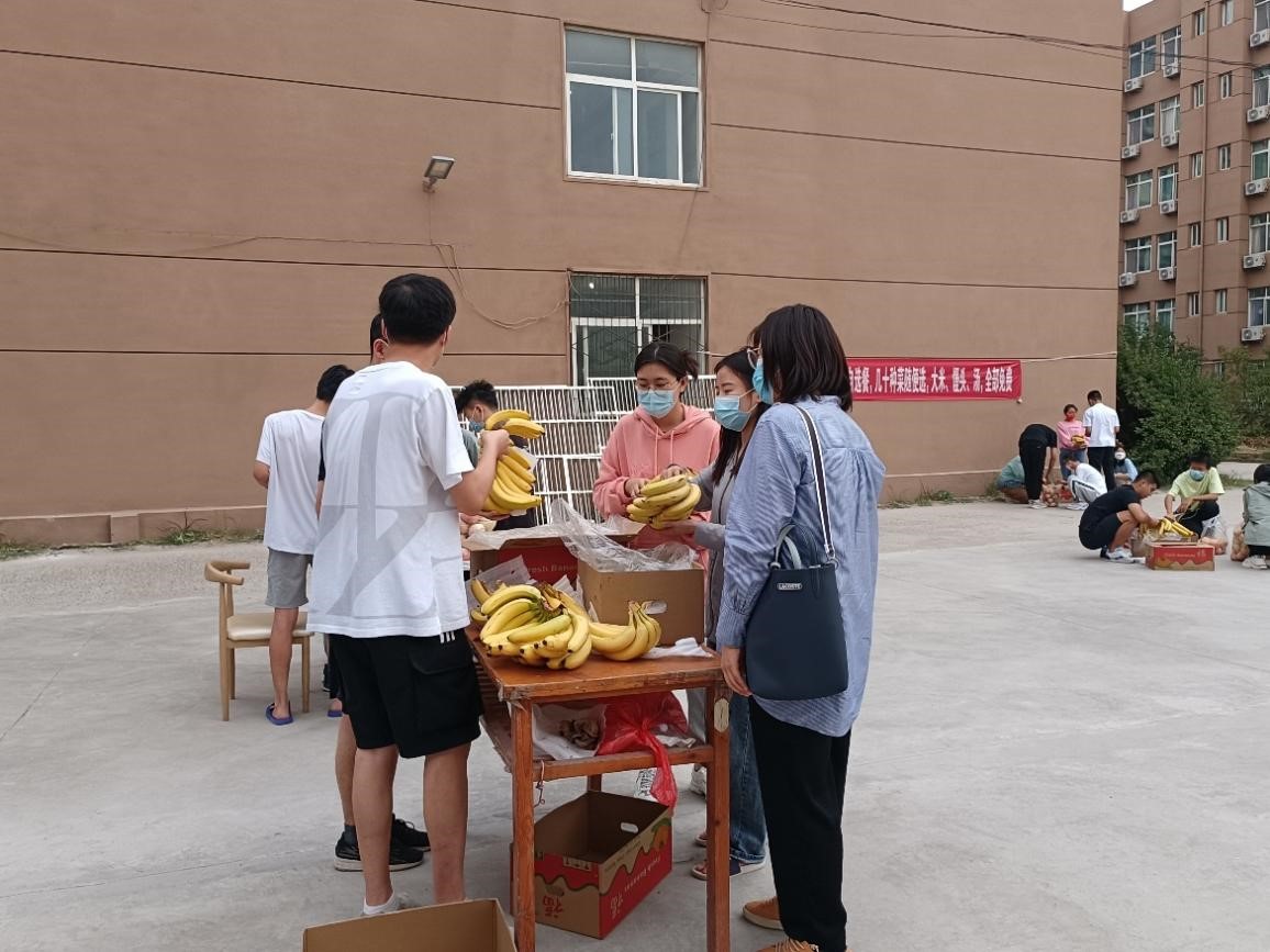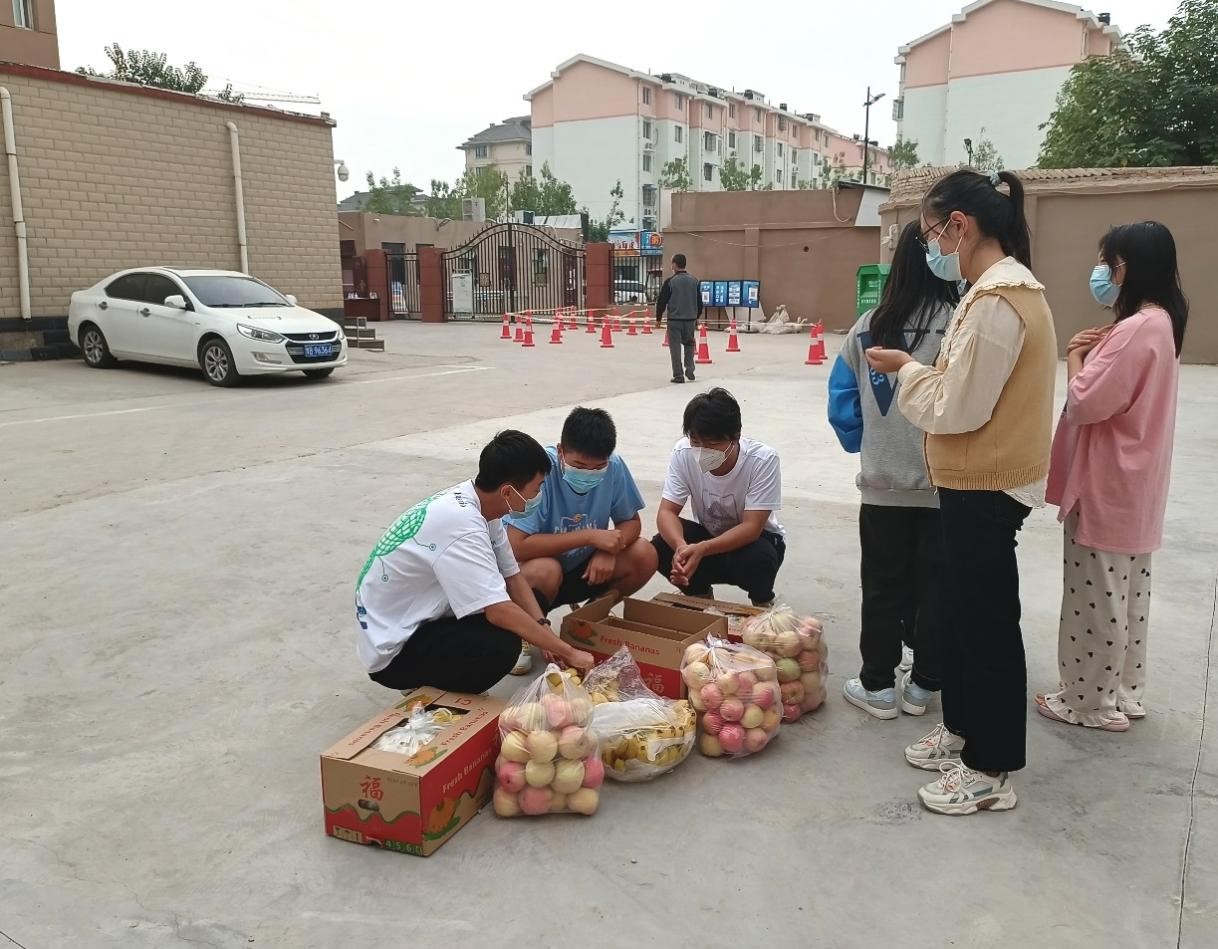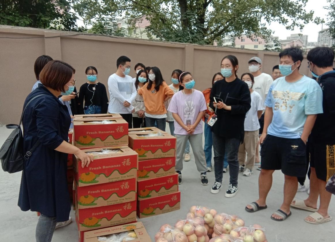 当前新冠肺炎疫情防控形势严峻复杂,化学化工学院高度重视学生生活需求,牵挂学生身心状态,为凝聚力量、共同防疫、温暖人心、传递关爱,9月27日下午,学院党委办公室主任、2022级辅导员宁攀,团委书记、2020级辅导员郭佳代表学院为被临时封控在北苑和东苑学生公寓的学生发放了爱心水果。