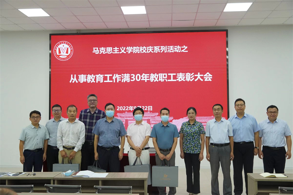 为迎接河南大学110周年校庆,弘扬中华民族尊师重教的优良传统,激励广大教职工热爱教育事业、建功立业新时代,马克思主义学院于9月22日下午在科技楼一楼报告厅举行从教满30年教职工表彰大会。学院领导班子成员和全体教职工参加大会,大会由学院副院长孟骞主持。