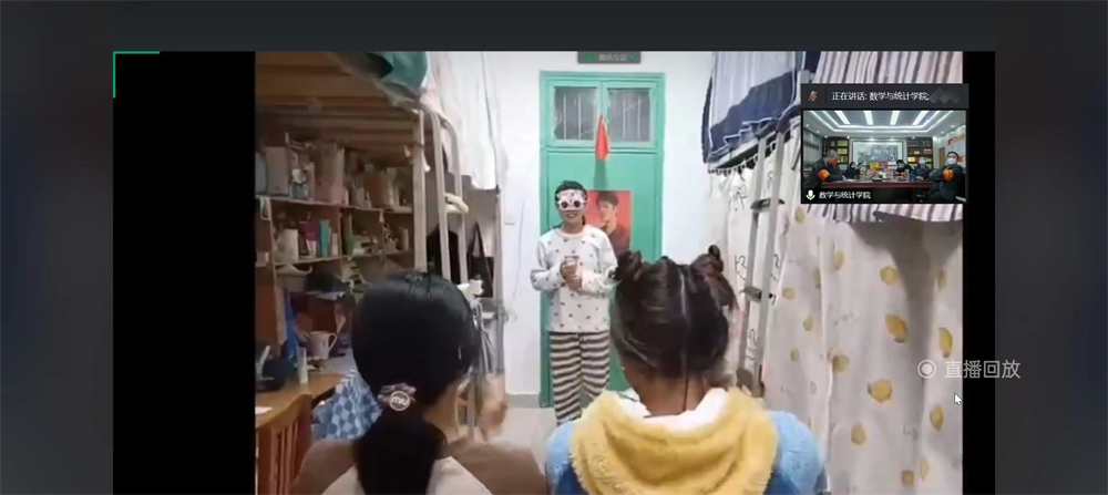 为了丰富疫情影响下学生的业余生活,缓解学生封闭管理状态下的心理压力,并迎接学院2022级本科生、研究生新生,10月30日晚上,数学与统计学院举办了云上抗击疫情暨2022级迎新晚会。学院领导班子全体成员、全体辅导员、全体学生和部分教师代表线上线下参加了本次晚会。晚会由2021级本科生吴元皓主持。