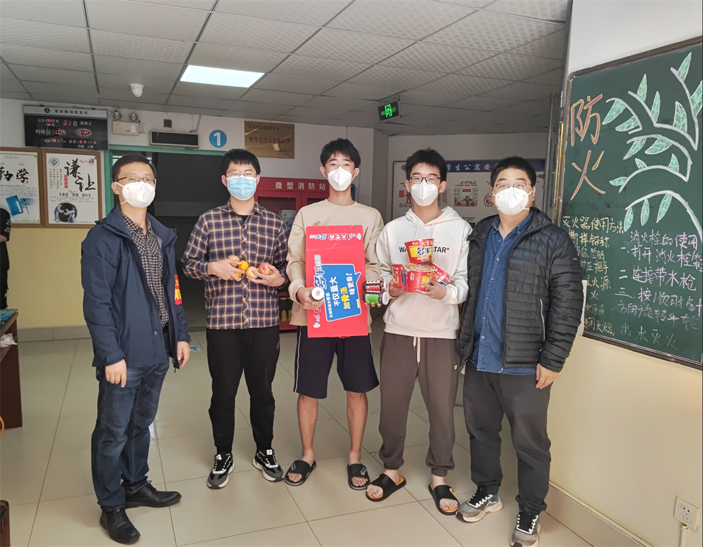 第二天上午,学院老师专门到宿舍楼下为获奖学生送上香菇酱、方便面、水果等奖品,并举行了简短的颁奖仪式,为封控管理的学生们带去了学院的关心和温暖。