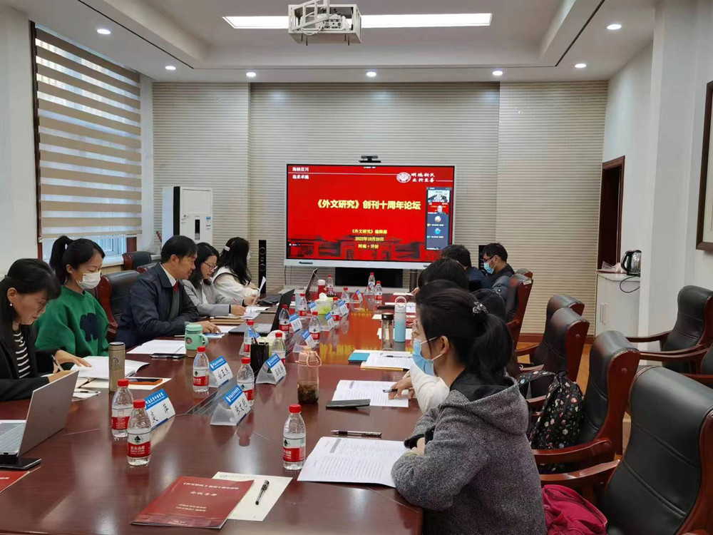 为回顾过去、展望未来,开创期刊发展新局面,10月20日,《外文研究》编辑部线上线下举办创刊十周年论坛。线上嘉宾包括河南大学党委常委、副校长孙君健教授以及王克非、束定芳、杨平、冉永平等12位来自国内主要外语类期刊的主编。线下参会人员包括河南大学外语学院院长、《外文研究》主编、编辑部主任杨朝军教授、执行主任李巧慧教授以及侯健博士等编辑和工作人员。杨朝军主持开幕式,李巧慧主持主旨发言、编辑代表致辞和闭幕式。