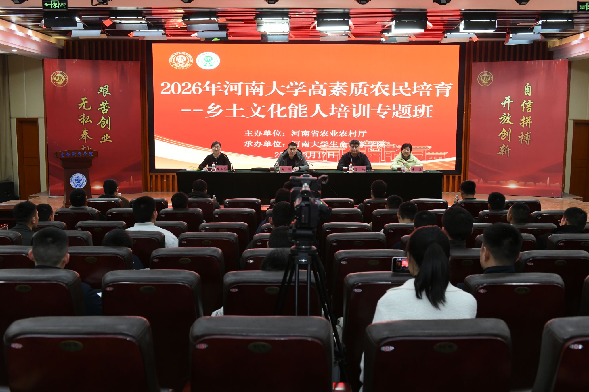 近日,由河南省农业农村厅主办,生命科学学院承办的河南大学2026年高素质农民培育・乡土文化能人培训专题班开班仪式在学院圆形报告厅举行。河南省农业农村厅科技教育处副处长吴辉,学院副院长苏鹏、成教办负责人李黎、培训班课程负责人苏亚蕊、培训班班主任陈小迪出席开班仪式,近50名开封籍退役军人参加培训。开班仪式由苏亚蕊主持。