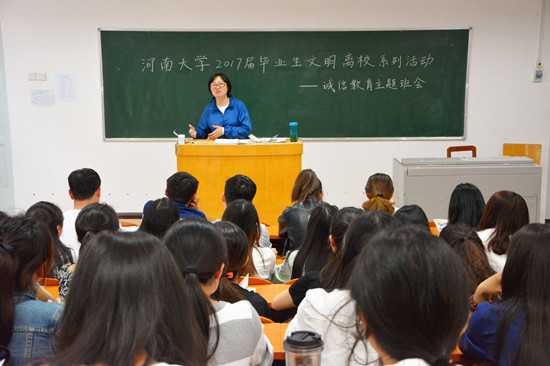 君子养心,莫善于诚。5月9日下午,文学院2017届毕业生文明离校系列活动——大学生诚信教育主题班会在文学院一楼大教室召开,活动由2013级辅导员周青主持。