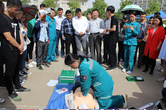 5月6日上午,由校学生处、共青团河南大学委员会、开封市红十字会主办,基础医学院团委承办的第二届“红十字会应急救护知识技能文化节”在马可广场举行。开封市红十字会、开封市第二中医院、学校相关职能部门及学院有关负责人出席开幕式。开幕式由学院党委副书记刘志臣主持。