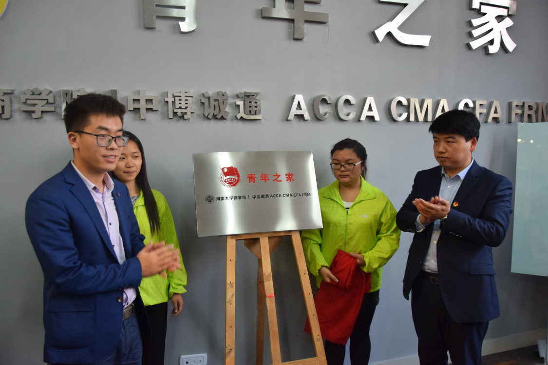 4月28日上午,商学院“青年之家”揭牌仪式在商学院117办公室举行。北京中博诚通国际技术培训有限责任公司董事李波、鄂豫宁大区经理候利鹏,校团委书记翟新礼及商学院有关负责人等参加仪式。