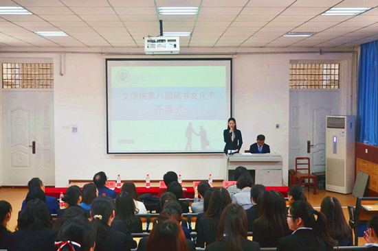 4月24日上午,文学院第八届“秘书文化节”开幕式在院二楼大教室举行。文学院相关领导老师出席本次活动。