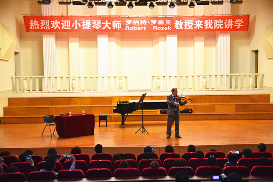 3月29日下午,来自加拿大British Columbia音乐学院的世界著名小提琴演奏家、教育家、指挥家罗伯特•罗赛克Robert Rozek教授应邀来校,在艺术学院音乐厅举办了大师讲座。艺术学院器乐专业师生以及来自兄弟院校的老师和省内的小提琴同行聆听了大师课。艺术学院相关领导出席大师讲座。