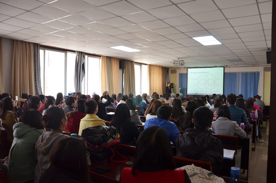 3月13日下午,Melissa围绕“Neuroscience as a window to motor development”这一主题,在学院五楼行为观察室与心理学、教育学、学前教育学等专业领域的教师、学生探讨动作发展与心理、教育领域的交叉研究,为教育科学学院学科间的融合提供不同的思路。3月14日,Melissa博士在学院四楼会议室,进行一场关于“Foundations of Motor Development”的学术讲座,来自教育科学学院师生、体育学院师生、校附属幼儿园教师等参加了此次讲座,在讲座的基础上展开了深入讨论。Melissa参观开封市的3所幼儿园,并针对幼儿园的特色课程提出针对性的建议,受到幼儿园领导和老师的赞扬和感谢。3月17日,Melissa专门针对动作发展课程的设置和教学,对教育科学学院的部分老师和同学进行了一天的培训和实践教学。