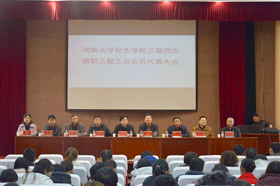 1月13日下午,民生学院第三届四次教职工暨工会会员代表大会在学院艺术楼一楼报告厅召开。学院党政领导班子,全院教职工及工会会员代表参加会议。大会由常务副书记刘道衔主持。