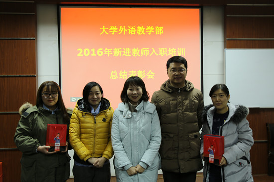 12月29日下午,大学外语教学部2016年新入职教师讲课比赛暨新教师入职培训总结表彰会在外语部会议室举行,外语部副主任郭明、杨剑波参加总结表彰会。