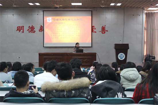 为增强同学们的校园安全防护意识,加强同学们的心理健康教育,引导同学们诚信做人、诚信考试。12月22日中午,化学化工学院召开2014级诚信教育和校园安全教育专题大会,大会在学院学术报告厅召开。该年级全体同学参加,大会由学院党委办公室主任兼2014级辅导员王路娟主持。