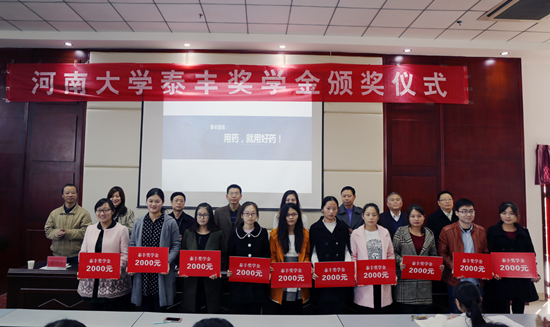 河南省泰丰集团公司是一家立足河南、面向全国发展、以健康产业为核心的集团公司。公司一直秉承“责任、激情、专业、执着、共赢”理念,热心公益事业, 2012年在我校药学院设立泰丰奖学金。