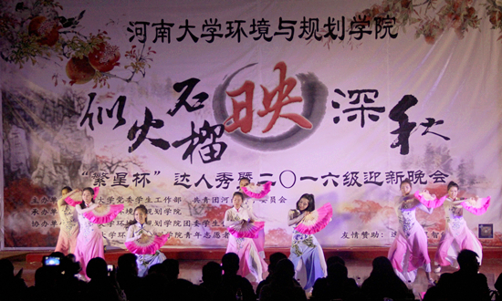 为青春喝彩,与梦想同行。10月30日晚,由环境与规划学院承办的“似火石榴映深秋”第七届达人秀暨2016级迎新晚会在金明校区计算机大楼二楼报告厅举行。环境与规划学院相关老师、四百余名学生参加晚会。
