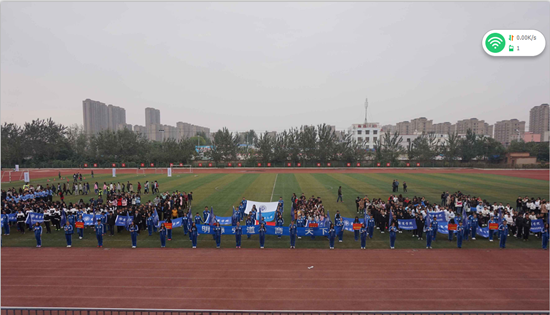 激昂的国歌拉开了秋运会的序幕。院党委书记杨俊中为大会致辞,他向筹备本次运动会的全体工作人员表示衷心的感谢,希望全体运动员发扬“更高、更强””的奥林匹克精神,敢于拼搏,赛出水平,赛出风格!并预祝此本运动会取得圆满成功。随后,拉拉队表演了活力四射的开场舞,伴随着解说员的精彩解说,教职工运动员方队和各班级运动员方队步履铿锵地走过主席台。校体委副主任、公共体育教研部主任洪浩介绍了比赛规则,要求比赛要遵循公开公正的原则,增强团结意识,彰显体育精神。运动员代表、裁判员代表分别庄严宣誓。最后,院长王性玉宣布运动会开幕。