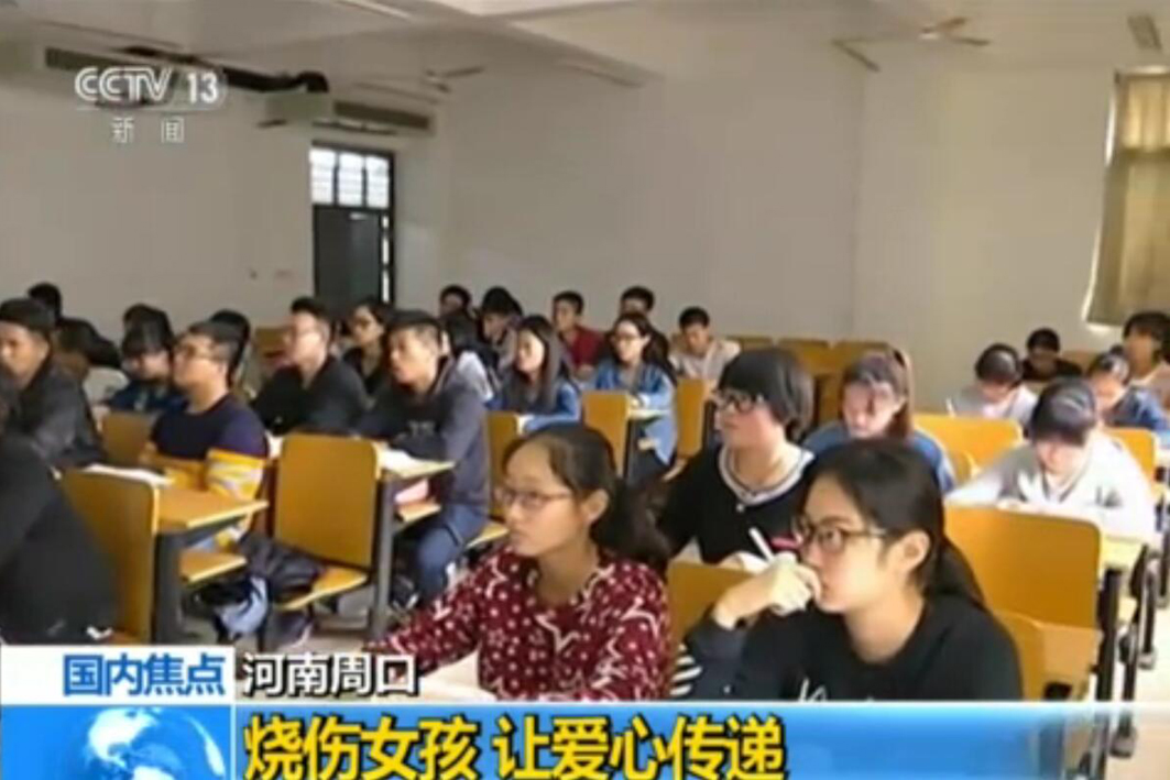 10月18日晚,央视新闻频道以“烧伤女孩,让爱心传递”为题,播出了河南大学民生学院学生张静珂捐出18万元爱心善款的感人事迹。