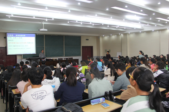 10月10日,中国科学院院士、第三世界科学院院士陈木法教授应邀来到我校,在数学与统计学院作了题为“Computing maximal eigenpair and Beyond ”的学术报告和题为“网络引领的教育新变革”的科普通俗报告。我校近300名师生参加了报告会。报告会由数学与统计学院院长冯淑霞主持。