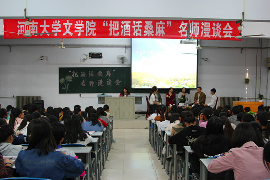 据悉,“把酒话桑麻”名师漫谈会是文学院的品牌学生活动之一,旨在加强师生之间的交流,提高同学们的学习兴趣,帮助新生们尽快适应大学生活。