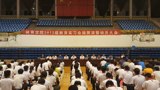 2016年9月12日晚上,河南大学体育学院2013级体育教育、武术与民族传统体育专业教育实习会操展演暨动员大会在明伦校区体育馆举行。体育学院院长、博士生导师张大超教授、本次教育实习工作组成员出席了本次会操展演及动员大会。会操展演暨动员大会由副院长张慧主持。