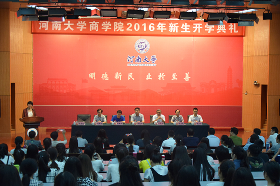 9月3日上午,商学院2016年新生开学典礼在金明校区计算机大楼二楼报告厅举行,学院相关负责人,教师代表,各年级辅导员,2016级500余名本科生、研究生参加开学典礼。典礼由院党委副书记吕英建主持。